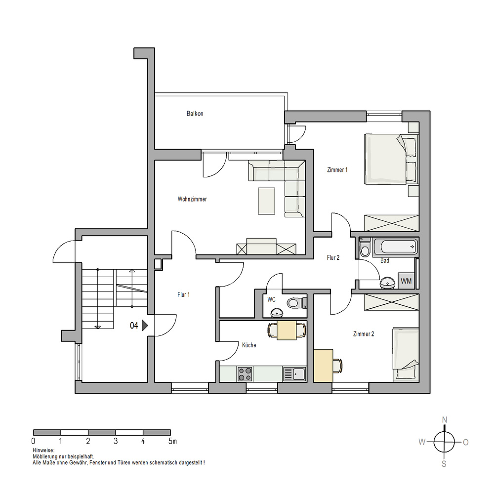 Die Wohnung überzeugt durch ihre helle und freundliche Atmosphäre sowie eine durchdachte Raumaufteilung. Neben einem geräumigen Wohnbereich stehen Ihnen zwei weitere Zimmer, eine separate Küche, ein Badezimmer mit Badewanne und WC sowie ein zusätzliches, separates WC zur Verfügung.
