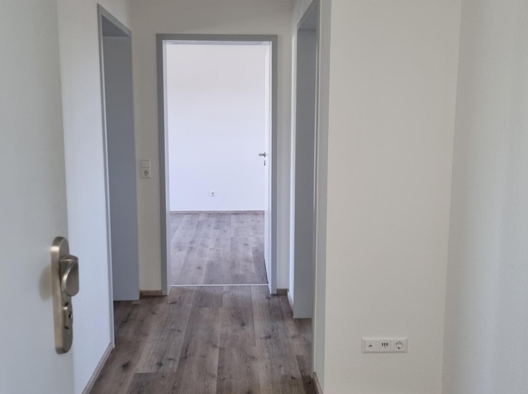 Die Wohnung wird unmöbliert übergeben und verfügt über einen hochwertigen Klick-Vinyl-Boden in Holzoptik sowie weiß gestrichene Wände. Neben drei gut geschnittenen Zimmern bietet sie eine helle Küche, ein modernes Badezimmer mit Dusche und einen großzügigen Balkon, der zum Entspannen einlädt. Ein Kellerabteil sorgt zusätzlich für praktischen Stauraum.