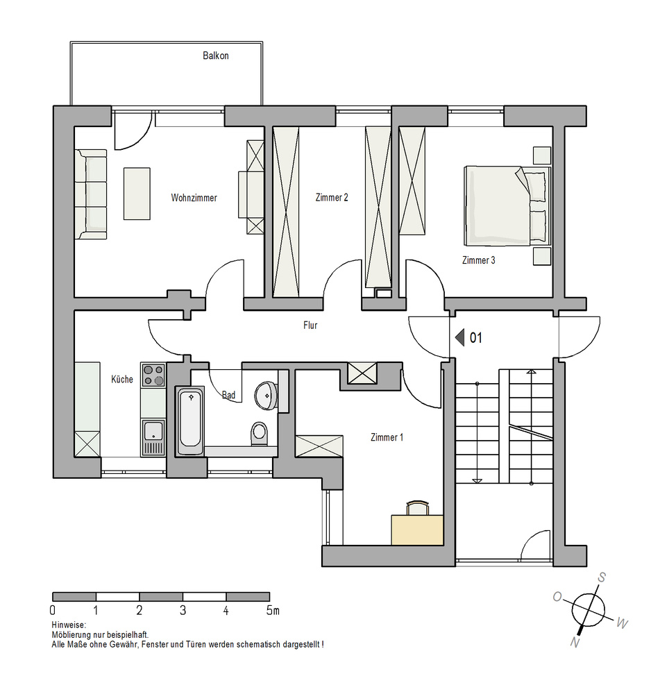 Die Wohnung ist ohne Mobiliar und ohne Küche zu mieten.