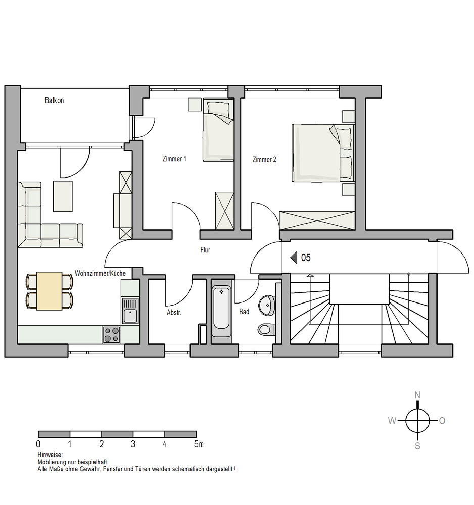 Die Wohnung ist ohne Mobiliar und ohne Küche zu mieten.
