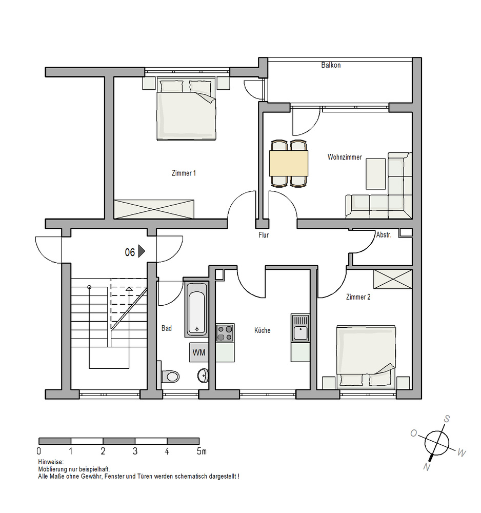 Die Wohnung wird ohne Mobiliar und ohne Küche vermietet.