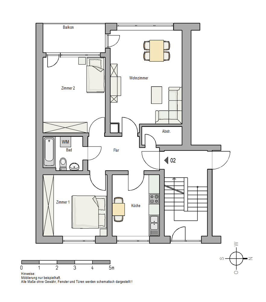 Die Wohnung wird ohne Mobiliar und ohne Küche vermietet.