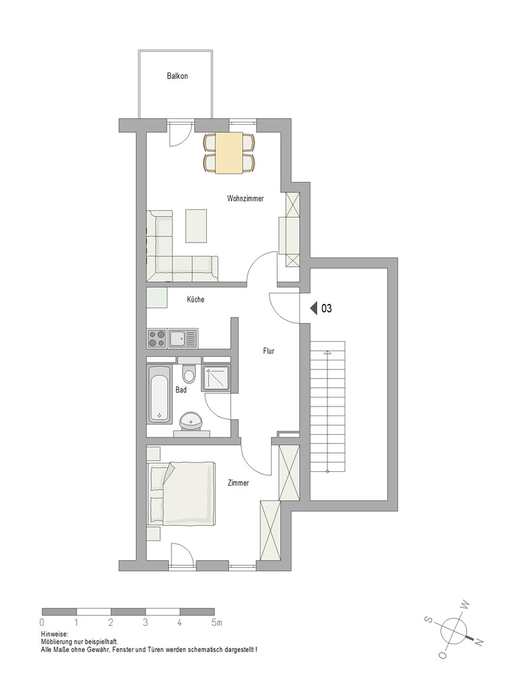 Die Wohnung wird unmöbliert und ohne Einbauküche vermietet.