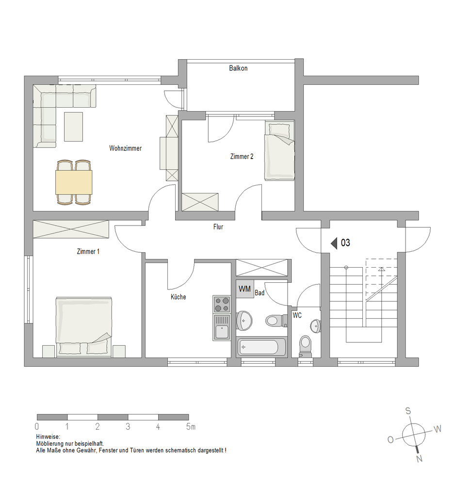 Die Wohnung wird unmöbliert und ohne Einbauküche vermietet. Die Mietsicherheit beträgt 1.232,67 €.